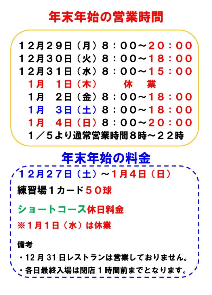 ※元日・荒天時休業、年末年始短縮営業あり