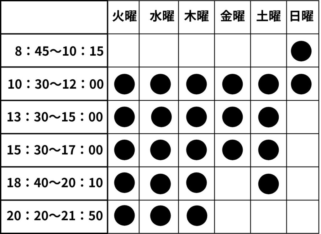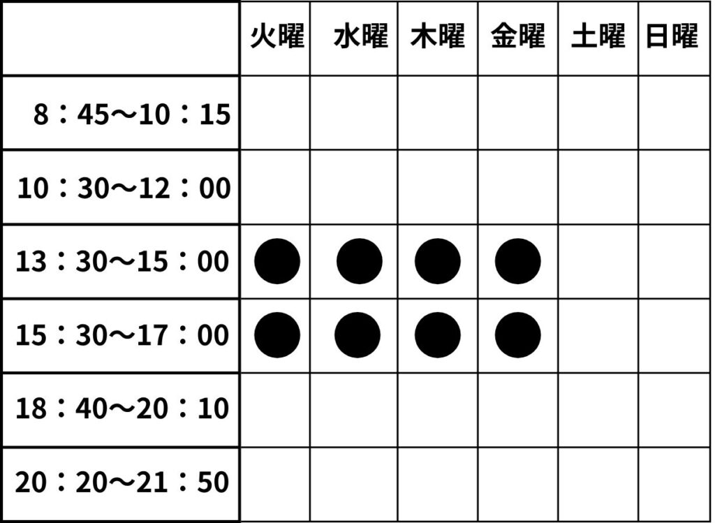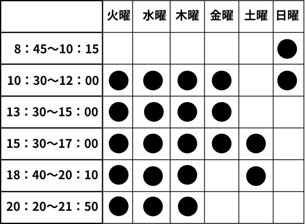 ※休講日等は、毎月の開講日カレンダーをご確認ください。